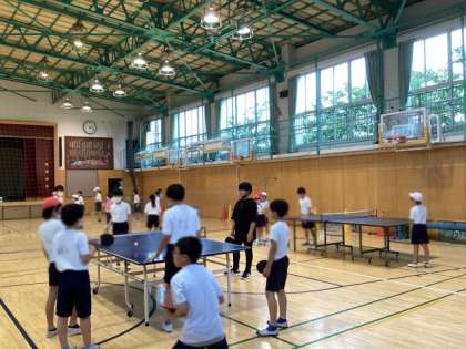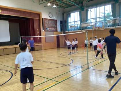 6年生を中心にどんな練習が必要かを話し合って活動しています。今回は、はじめにラリーの練習をしました。