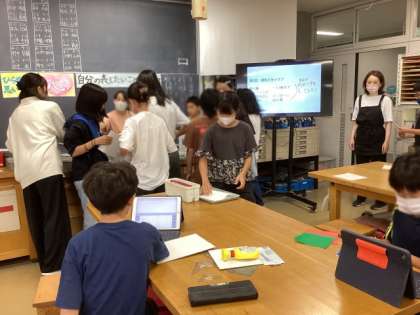 それぞれが作りたいものを考え、必要な材料や作り方を調べたり確かめたりしながら制作を進めています。