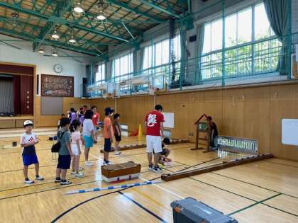 スタンプラリーカードを片手に、16個のゲームコーナーに挑戦しています。みんなとても楽しそうです。