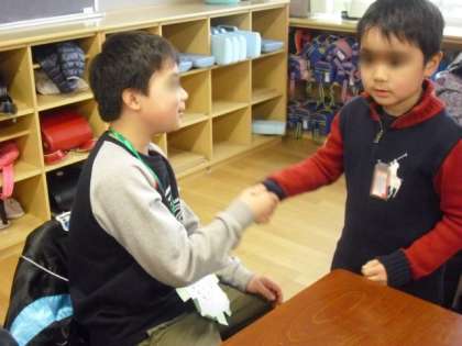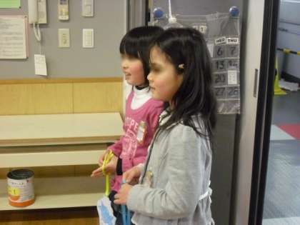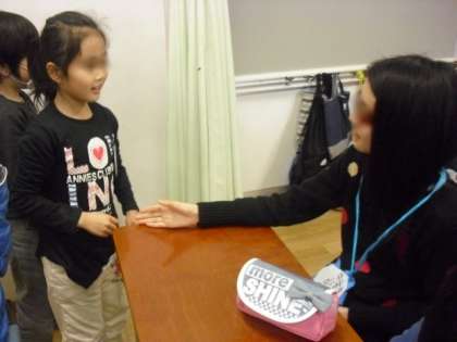 今日は、1年1組の子どもたちが、6年1組のお兄さん、お姉さんに感謝のメダルを届けに行きました。