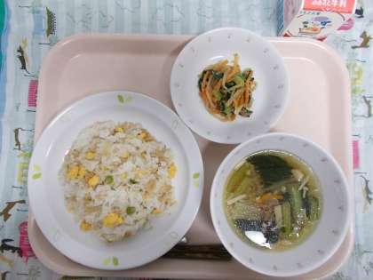 ツナそぼろごはん 牛乳 ごまあえ 沢煮椀