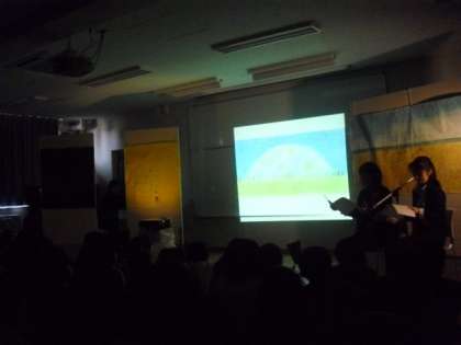 照明や音楽で演出を工夫していただき、子どもたちも食い入るように「ゴンダールのやさしい光」のおはなしを聞いていました。
