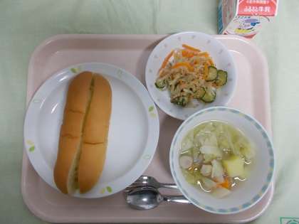 ツナチーズドック 牛乳 ポトフ じゃこサラダ