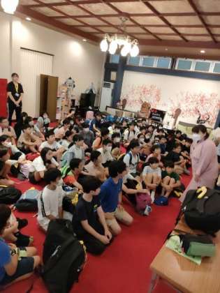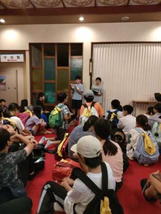 梅屋敷と高照に分宿です。それぞれの宿舎で開園式を終え、避難訓練では、非常口、避難経路の確認を丁寧に行いました。