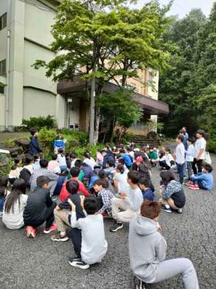 各宿舎、全員が集合して、児童代表の言葉と教員からの話を聞きました。