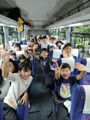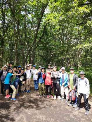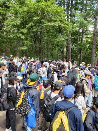 駐車場に全員が集合して、バスに乗って、ハイキングスタート地点「赤沼」に到着しました。