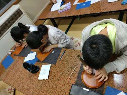 最初は、恐る恐る「ひっかき刀」を使っていましたが、次第に慣れて、大胆に彫ることができる子供たちが多く見られました。