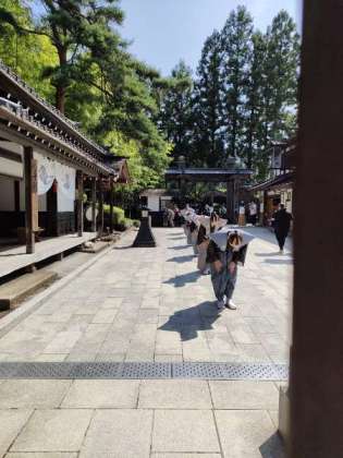 宿舎からバスに乗って、目的地「日光江戸村」に到着しました。