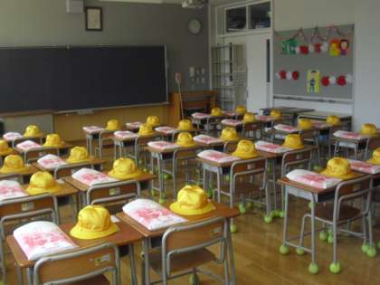 6年生のおかげで1年生の教室も式場も明日の準備が整いました。