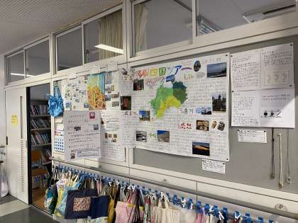 夏休みに取り組んだ自由研究を各学級前に掲示しています。