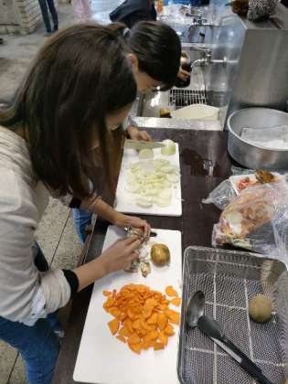 補助員の方から、カレーの作り方、ご飯の炊き方、薪の火の着け方…留意点の説明を受けた後、「飯ごう炊さん」スタートです。