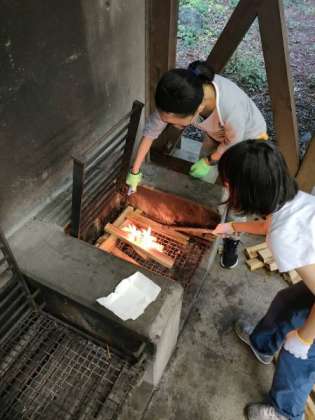 「出発の会」での児童のあいさつにもありましたが、この移動教室で最も楽しみにしている子も多い「飯ごう炊さん」がいよいよ始まります。