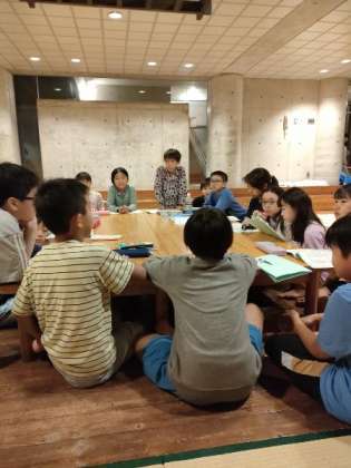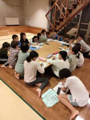 生活班の班長18人が1階の大広間に集まり、今日の振り返りと明日の行動の確認をします。