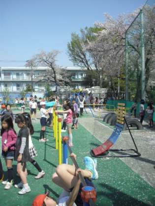 外に出ると汗ばむ陽気になりました。桜吹雪が舞う中、子どもたちは元気に遊んでいます。