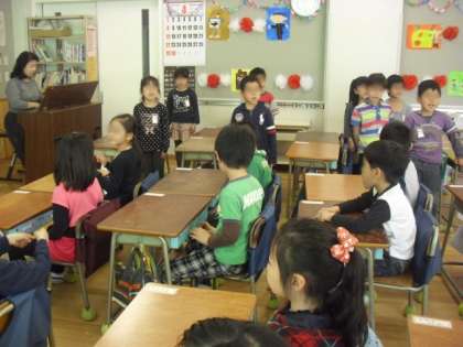 1年生を迎える会で歌う、「1ねんせいになったよ(1ねんせいになったらの替え歌)」や「ともだちになるために」・「校歌」の練習も始めました。「ともだちになるために」は手話も入れて歌います。