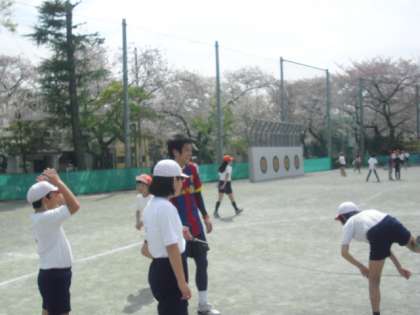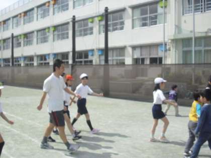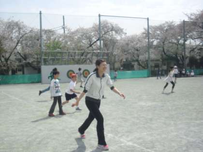 休み時間には先生も一緒に子どもたちと遊んでいます。とっても楽しそうな子どもたちの表情です。