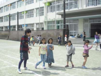 ひがしでは、先生も一緒に遊ぶ「共遊び」を行っています。今日の昼休みの様子です。