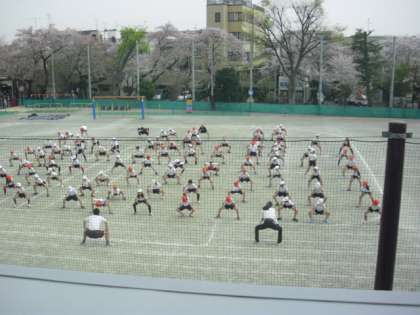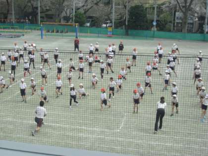 2階から校庭を覗くと、体育の学習が始まっていました。準備運動をしている隊形がきれいなのでぱちり!しっかり運動できましたか。