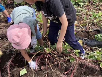 ツルを引っ張り、手で土を掘り、頑張って収穫しました。