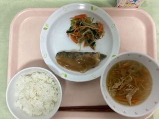 ごはん 牛乳 さばのみそ煮 からしあえ 沢煮椀