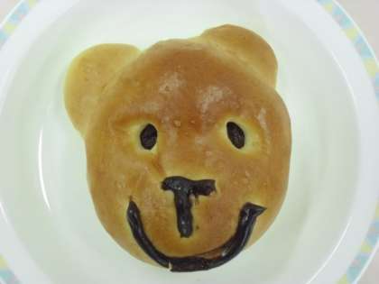 初めての給食は、恒例の「くまちゃん パン」と、牛乳です。