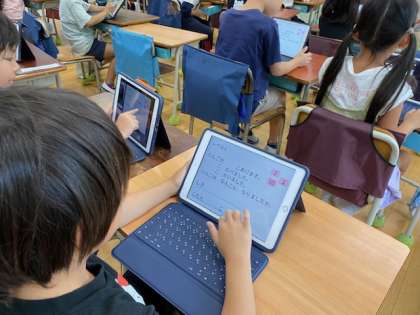 最後は問題作りに挑戦しました。タブレットも使い方をどんどん覚えて学習に取り組んでいます。
