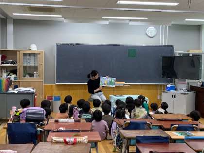 読書の秋。1〜3年生の教室では、朝の時間、ボランティアの保護者の方に読み聞かせをしていただいています。