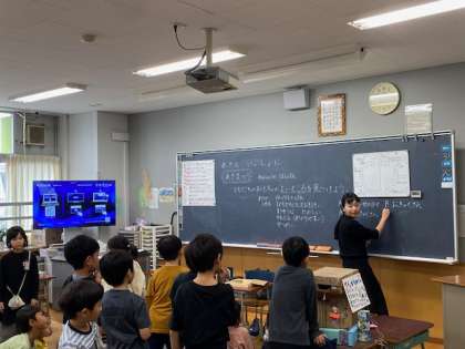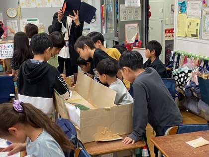 1年生の生活科では、秋の素材を生かしたおもちゃを作り、「あきまつり」を開きます。