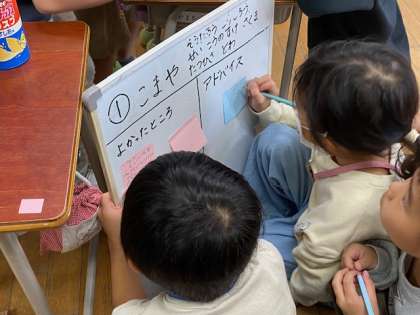 遊んだ後は、お互いによかったところやアドバイスを送りました。