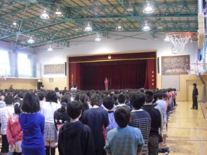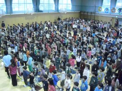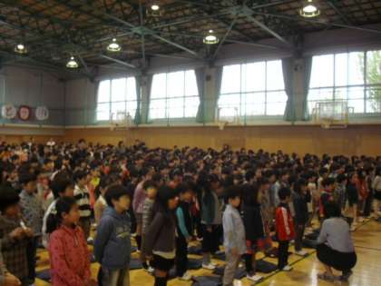 毎週月曜日の朝は、全校朝会です。1年生も今日から全校朝会へ参加です。あいにくの雨で今朝は、体育館で行いました。とっても姿勢よくお話を聞けるので嬉しかったです。先輩のお友達もよい姿勢でお話を聞いています。