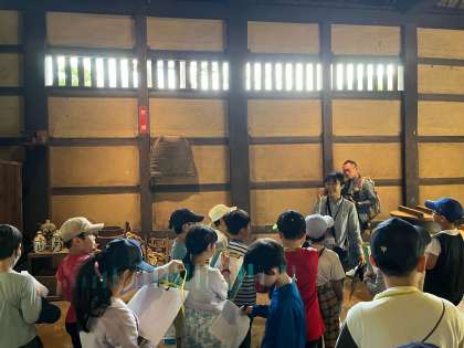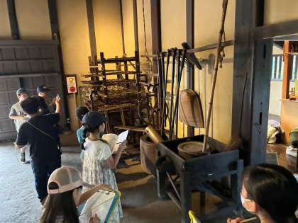 また、次大夫堀公園では、江戸末期から明治期の民家に実際に入って民具や建物を間近に見学しました。施設の方にすすんで質問する児童もいて、昔の道具や暮らしについて理解を深めることができました。今後、教室で見学したことを生かして学習をすすめていきます。