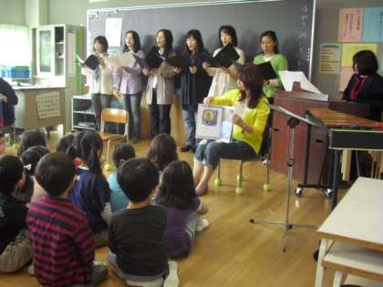 PTAコーラス部とのコラボレーションで行われた今回のおはなし会には、1年生の保護者の方々も見学にいらしていました。