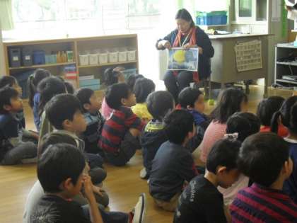 DKO(読書活動応援委員会)による、今年度第1回の「おはなし会」が1年4組で行われました。