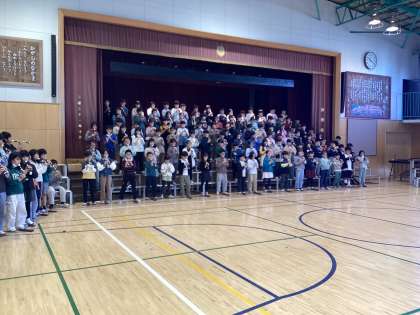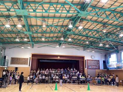 音楽会に向けて、全学年「通し練習」をしました。1年生は、「はじめの言葉」から元気いっぱいで、合奏や歌も楽しそうに堂々と演奏していました。2年生は、打楽器のリズムをしっかりと聴きながら、テンポを合わせて「きらきら星変奏曲」を合奏できるようになりました。3年生は、美しい歌声を体育館いっぱいに響かせ、手話や英語を取り入れながらいきいきと歌っていました。リコーダーは、一人一人の努力が伝わってくる演奏でした。音楽会に向けて、子供たちの気持ちが高まってきています。