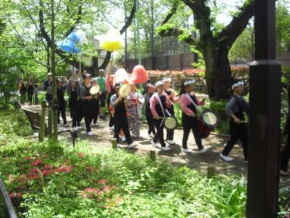 コミュニティーの方々や、おやじの会、東深沢中学校の皆さん、園芸高校の皆さん…、とともに東深沢小学校の和太鼓「こざくら」も参加しました。