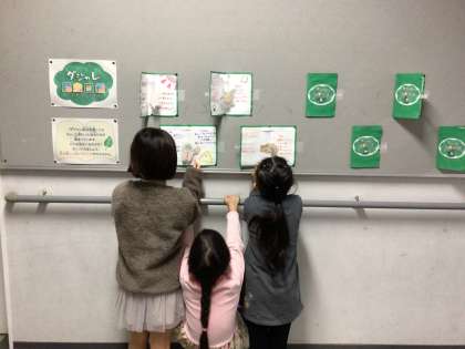 「ダジャレ昆虫図鑑」には冬を楽しく過ごすヒントが書かれており、毎日多くの児童が掲示前に立ち止まって見ています。