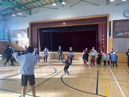 お兄さんお姉さんの話を一生懸命聞いてチャレンジする1年生とそれを見守る6年生のやり取りがなんとも微笑ましいです。
