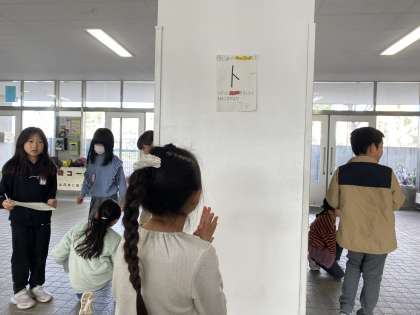 朝は各クラスで協力してクロスワードを解き、休み時間は学校中に散りばめられたキーワードを個人で集めました。休み時間には校内にクリスマスソングが流れ、児童も大盛り上がり!