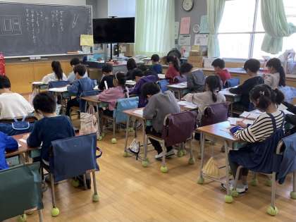 先週の水曜日に、各教室で書き初め大会を行いました。1年生は2学期から漢字を習い始め、平仮名と漢字を使った文を手本を見ながら硬筆で書きました。姿勢を正し、とめ、はね、はらいに気をつけながら一字一字に心を込めて書き初めを行いました。