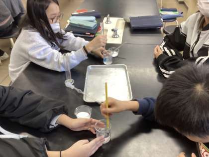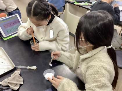 「ものが水にとけるには限りがあるのか?」を確かめるために、食塩とミョウバンをとかす実験を行いました。