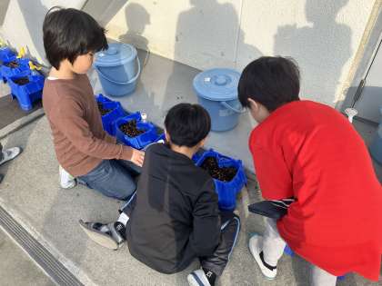 2年生は生活科の学習で小松菜を育て始めました。