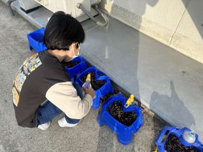 毎朝、朝の支度が終わると自分の小松菜に水をあげている姿が見られます。