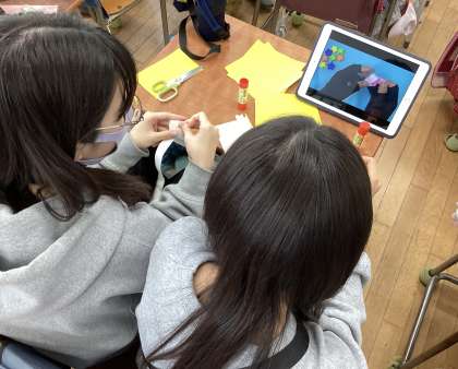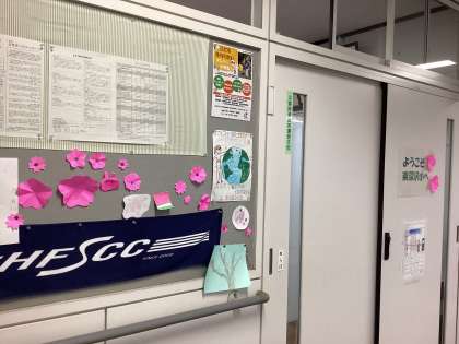 校内が明るくなるようにと、季節飾りを作って、校長室前を彩っています。