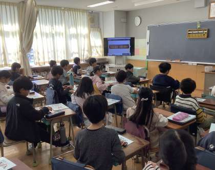 東京都珠算教育団体連合会のテキストと動画を活用しながら授業を行うことで、子どもたちは「そろばん」に興味をもって取り組んでいました。