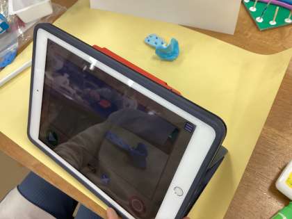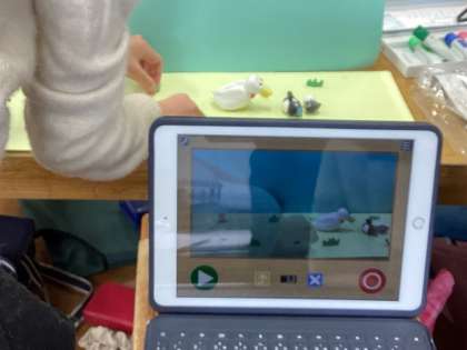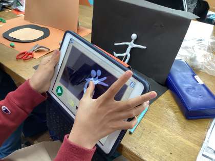 5年生はコマどりアニメーションを製作しました。背景をつけて、カメラの位置を調整して、真剣に撮影しています。たった数秒間のストーリーにもみんなの個性が溢れています。