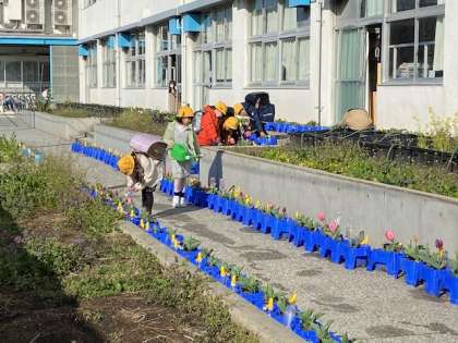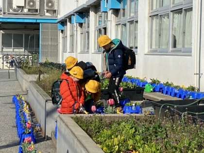 温かい日差しに誘われて、チューリップの花が咲き始めています。新しい春はもうすぐそこまで来ています。