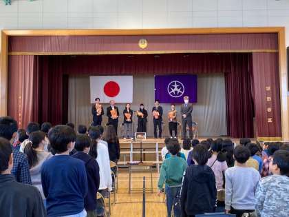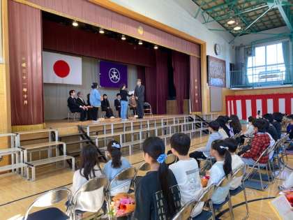 今日、この3月で東深沢小学校を去る先生方、主事さん方とのお別れの会、離任式が行われました。