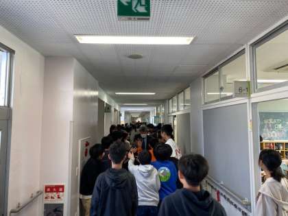 体育館を出た後は、各階、廊下で子供たちが待っていました。