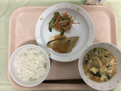 ごはん 牛乳 魚のみそ煮 ごま酢あえ むらくも汁