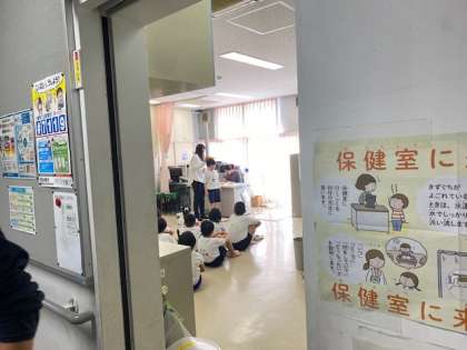 毎日の生活の中で、自分では大きくなっていることになかなか気付かないと思いますが、こうして測ってみると実感できるので、保健室からちょっぴり嬉しそうに出てくる表情がなんとも微笑ましいです。